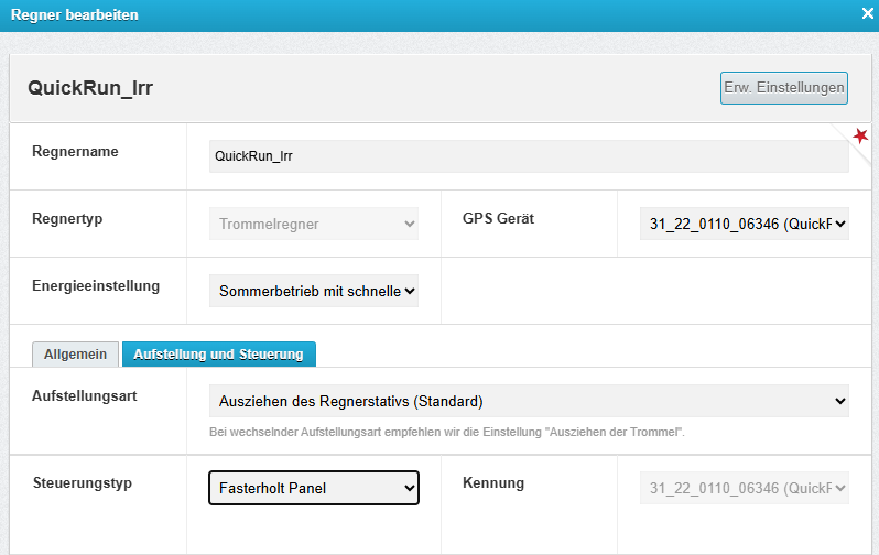 Um die Fasterholt-Maschine als Fernsteuerung in Raindancer benutzen zu können, müssen Sie das Verbindungskabel von der Maschine zum Panel anschließen. Für das Kabel ist Fasterholt zu kontaktieren.