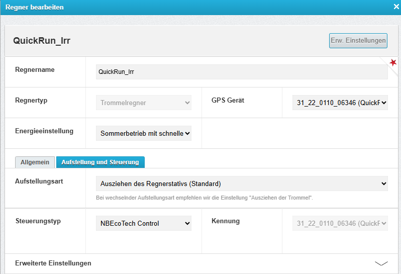 Um die NBEcoTech-Maschine als Fernsteuerung in Raindancer benutzen zu können, müssen Sie das Verbindungskabel von der Maschine zum Panel anschließen. Für das Kabel ist NBEcoTech zu kontaktieren.